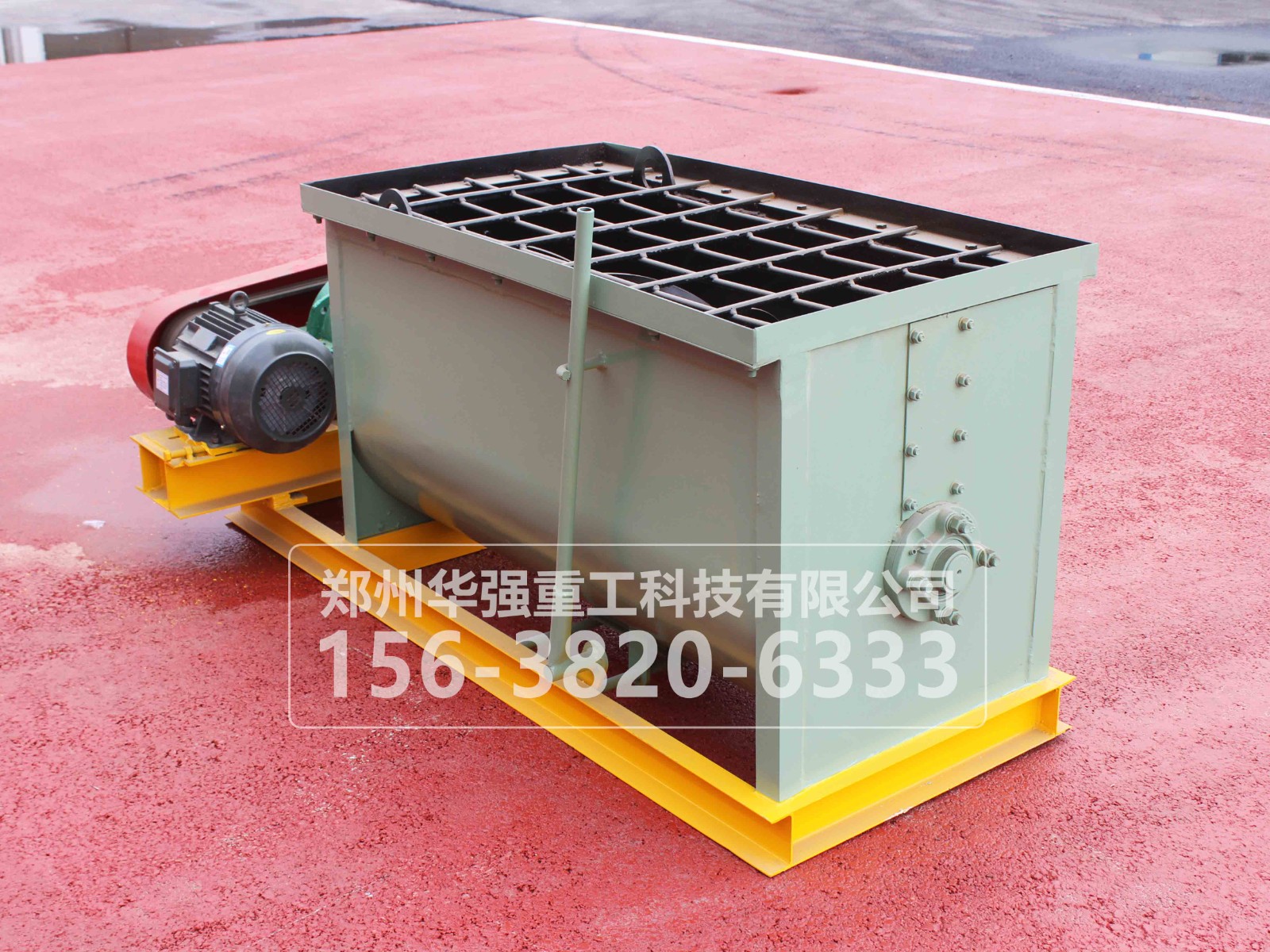 3.混合攪拌工作部分:由傳動(dòng)輪通過軸銷聯(lián)軸器(或鏈輪)傳至主軸。焊接于主軸上的特殊螺旋攪拌葉片同步轉(zhuǎn)動(dòng),將物料在攪拌室內(nèi)均勻的翻轉(zhuǎn),使物料能得到充分的混合,從而減少了物料的殘留量。物料經(jīng)一段時(shí)間的混合后從機(jī)體下方特設(shè)的出料口流出。